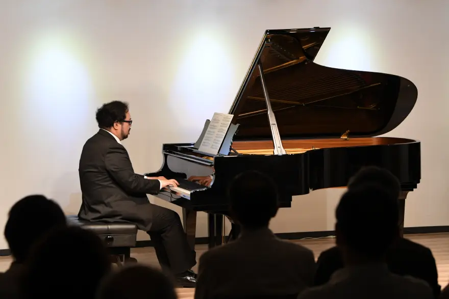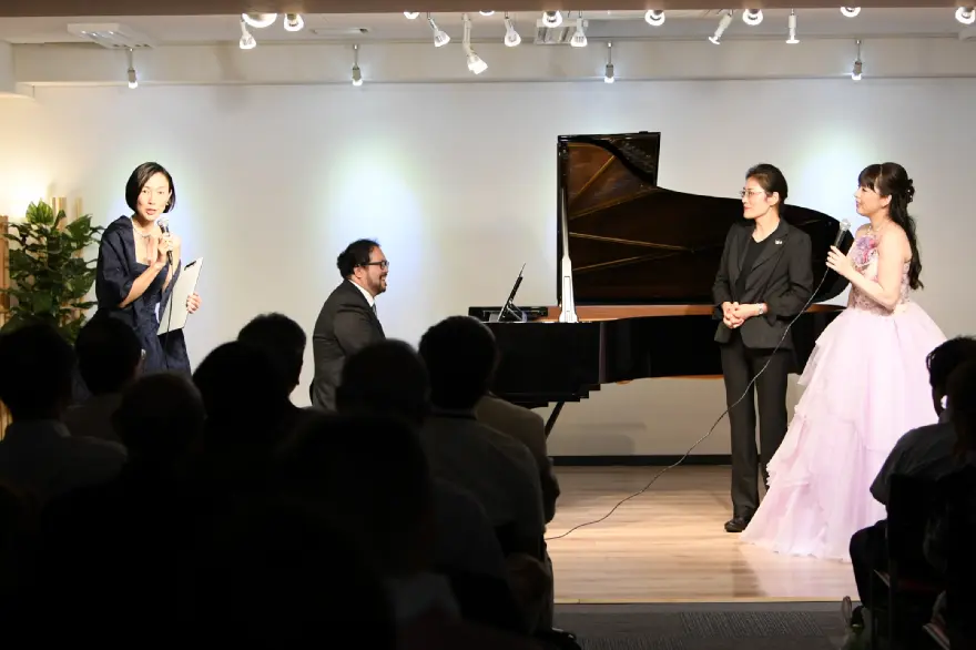 パッサージュの方がピアノの説明中