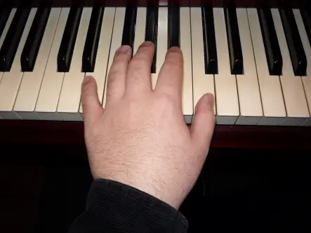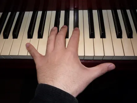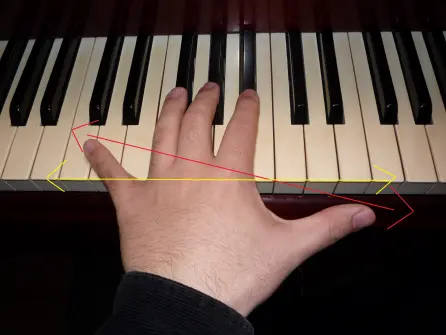 このままでは親指は鍵盤を押せませんので、