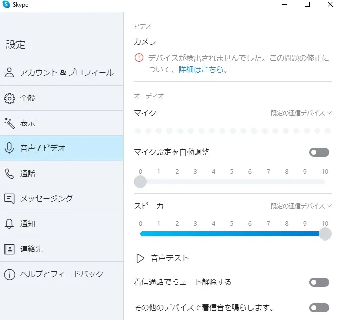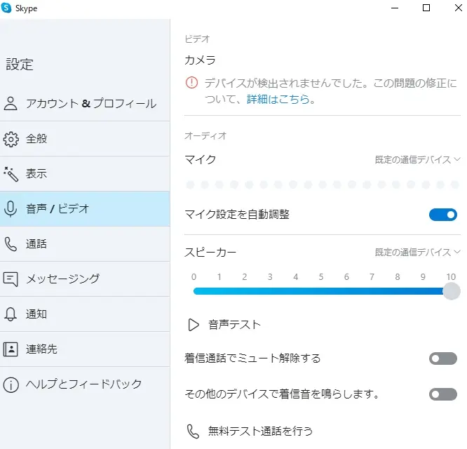 最後にパソコンで Skype を試したのですが、