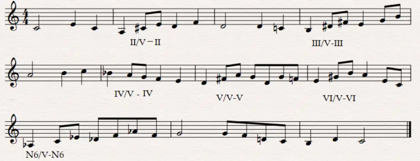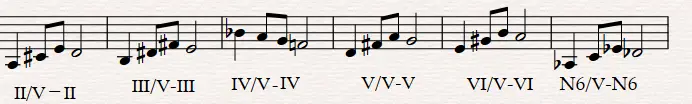 これらがハ長調における借用の一例です。