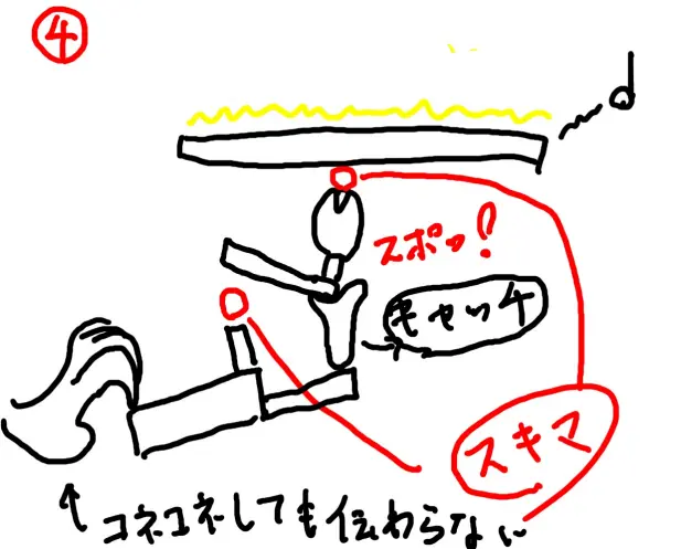 ピアノが音を鳴らすまでの、動作を私の拙い絵を使ってものすごーくざっくり解説します。