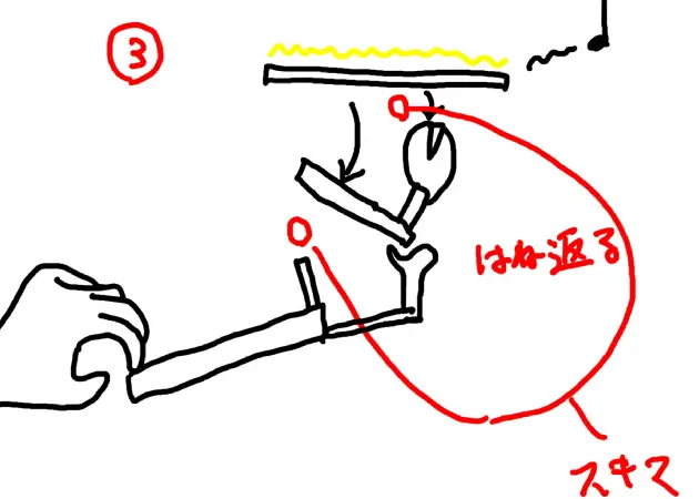 ハンマーが発音直後ハンマーは弦から跳ね返ってきます。