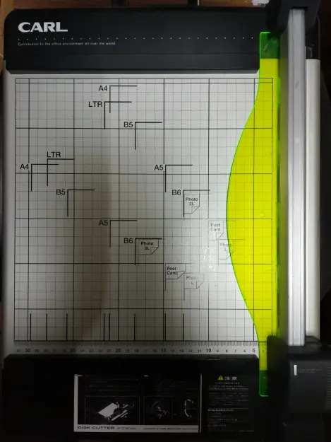 今回裁断に使ったものは、ローラーカッターを使っている裁断機で、
